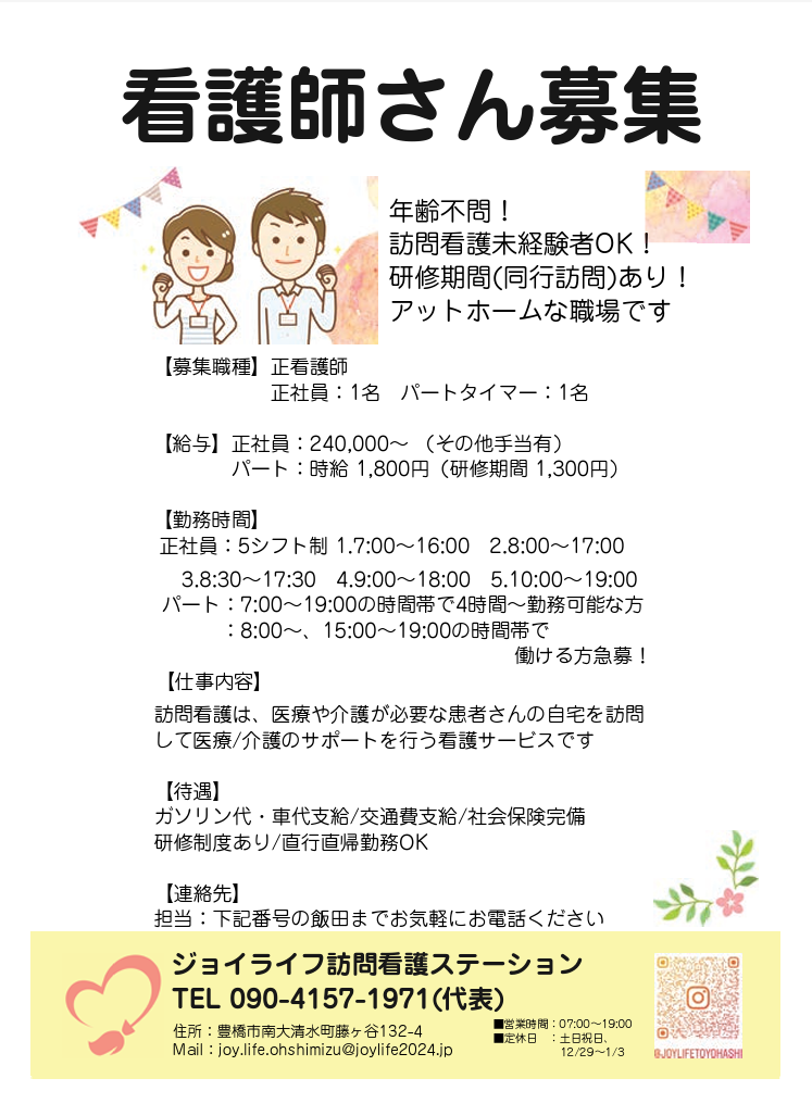 利用者さんに寄り添った訪問看護サービスの提供をジョイライフで楽しく働いてみませんか!